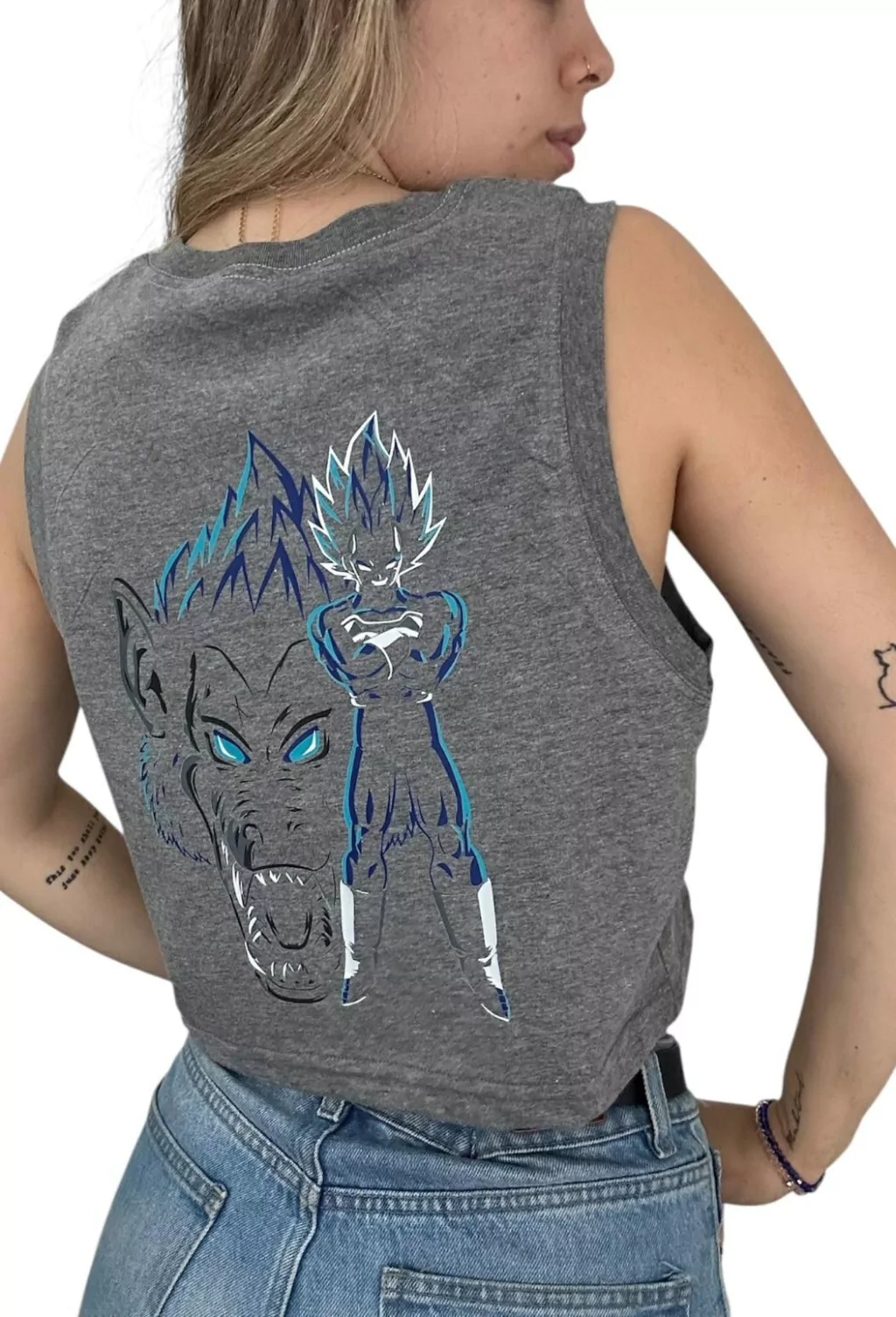 ¿Querés sentirte tan poderoso como Vegeta y fresco al mismo tiempo? Esta pupera sin mangas en gris con detalles en azul es perfecta para mostrar tu fanatismo con onda y comodidad.